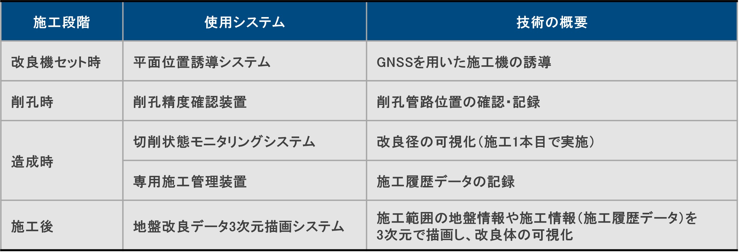 ICT技術を用いたV-JET工法は複数のICT技術により、施工状況のリアルタイム一元管理、施工履歴データの保存等が可能となるため、作業の省力化により施工性が向上します。